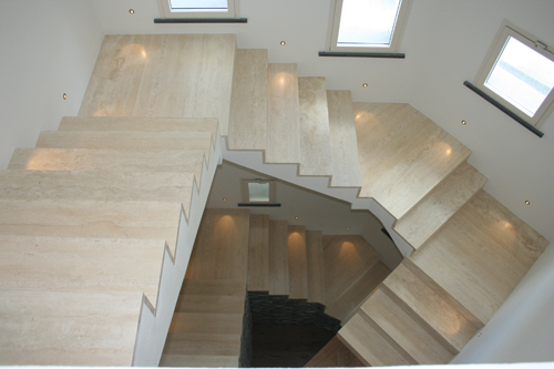 dettaglio scala in travertino casa padronale |