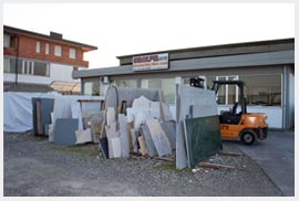 Naturalmente oltre al laboratorio presso la sede potete anche visionare lo showroom con un ampia campionatura di materiali sia fuori sul piazzale che all’interno e anche numerose realizzazioni come lavelli in blocco ,piatti doccia e bacinelle di varie forme.
