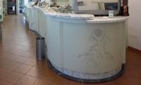 Anche i locali pubblici come Negozi, Bar ,Ristoranti e alberghi, vengono impreziositi dalle nostre lavorazioni . Utilizziamo sia i materiali naturali come il Bianco Carrara, i Travertini , l’ Emperador Dark , Rosso Verona sia gli agglomerati di Quarzo che con la loro ampia gamma di colori e le diverse tipologie di finiture, dal lucido a levigato dallo spazzolato all’anticato, soddisfano ogni richiesta anche la più particolare ed è veramente difficile che il cliente non riesca a trovare il materiale idoneo per la propria realizzazione.