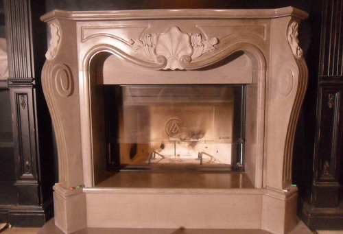 Frontale camino scolpito a mano in pietra di Fossena |